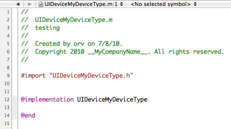 did not do precisely what I needed to do. I needed something specialized. I wanted to add new functionality to the UIDevice class as if it had been there all along.
